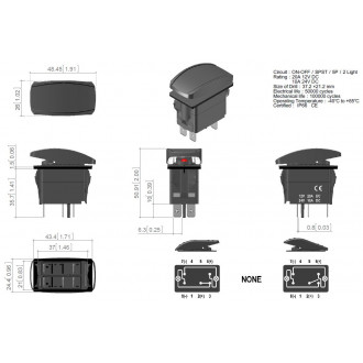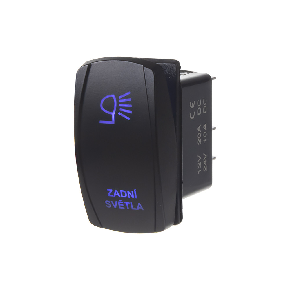 Kolébkový spínač ROCKER2 čtverec s modře podsvíceným symbolem a nápisem BACK LIGHTS je ideální pro různé aplikace, které vyžadují spolehlivé spínání napětí. Díky maximálnímu napětí 12 V / 20 A nebo 24 V / 10 A a praktickým rozměrům montážního otvoru 37 x 21 mm se snadno instaluje a používá. Spínač je vybaven podsvícením nápisu a symbolu, což zaručuje jeho viditelnost i v tmavém prostředí. Tento spínač je vhodný pro použití v automobilech, lodích a dalších vozidlech, kde je vyžadováno ovládání rampy.