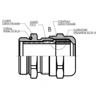 Kovová kabelová průchodka s metrickým závitem a těsnicím O-kroužkem.