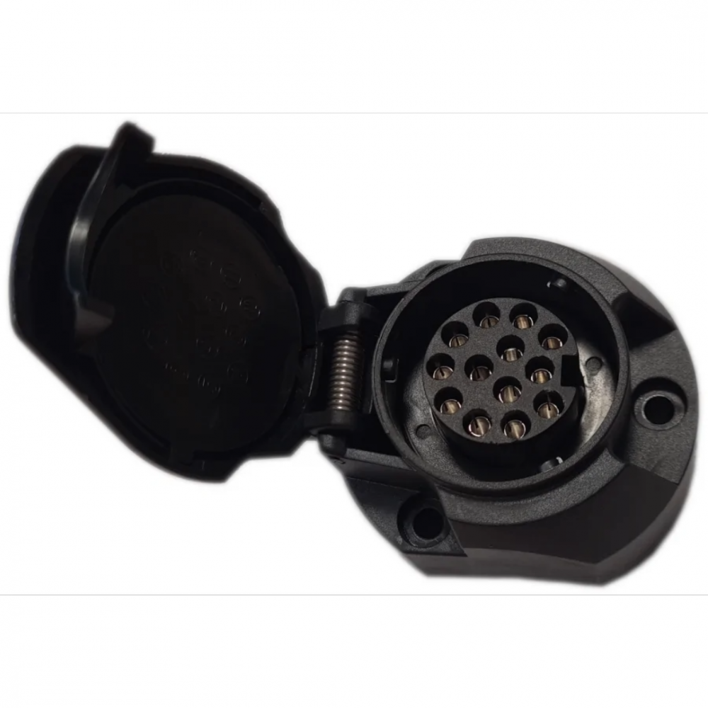 Poniklovaná zásuvka 13 PIN je vysoce kvalitní a odolná součástka pro bezpečné připojení přívěsů a karavanů.