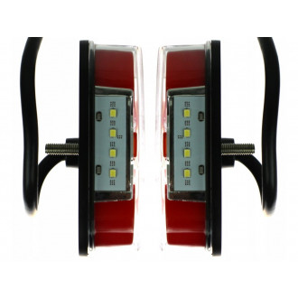 Sada univerzálních zadních světel LED s pozičním světlem NEON /vpravo + vlevo/ poziční světlo, brzdové světlo, dynamické směrové světlo, osvětlení registrační značky společně s pozičním světlem.