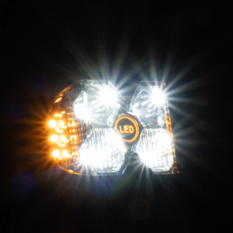 Dálkové bílé světlo a oranžový stroboskop lze zapnout jednotlivě nebo současně.