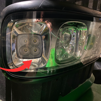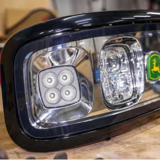 Vysoce kvalitní čtvercové opracování LED světlo určené pro traktory a postřikovače John Deere. Díky použití diod OSRAM poskytuje světelný tok 3200 lm s neutrální bílou barvou světla 5700K, a poskytuje tak vynikající viditelnost při práci.