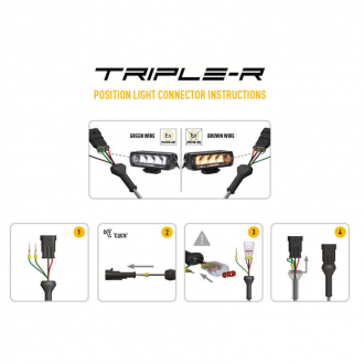 Triple-R 850 přichází s možností připojení integrované funkce obrysových/bočních světel, pro případ, kdy je požadavek na světelnou instalaci, která bude zaznamenána tolik během dne jako v noci. Existuje možnost připojit bílé nebo oranžové zbarvené obrysové světlo jednoduše vložením odpovídajícího drátu do konektoru pro lampu v místě instalace, nebo nechat obě odpojené, aby váš Triple-R 850 fungoval pouze jako dálkové světlo. Funkce dálkových světel je schválena podle předpisu ECE 112 , zatímco funkce obrysových světel (pouze bílá) je schválena podle předpisu ECE 7, což umožňuje, aby vaše zařízení Triple-R 850 fungovalo paralelně s vašimi standardními světlomety (pokud jsou uznávány předpisy EHK OSN) .