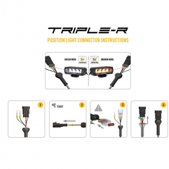 Triple-R 850 přichází s možností připojení integrované funkce obrysových/bočních světel, pro případ, kdy je požadavek na světelnou instalaci, která bude zaznamenána tolik během dne jako v noci. Existuje možnost připojit bílé nebo oranžové zbarvené obrysové světlo jednoduše vložením odpovídajícího drátu do konektoru pro lampu v místě instalace, nebo nechat obě odpojené, aby váš Triple-R 850 fungoval pouze jako dálkové světlo. Funkce dálkových světel je schválena podle předpisu ECE 112 , zatímco funkce obrysových světel (pouze bílá) je schválena podle předpisu ECE 7 , což umožňuje, aby vaše zařízení Triple-R 850 fungovalo paralelně s vašimi standardními světlomety (pokud jsou uznávány předpisy EHK OSN) .