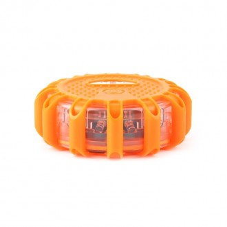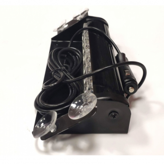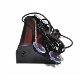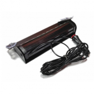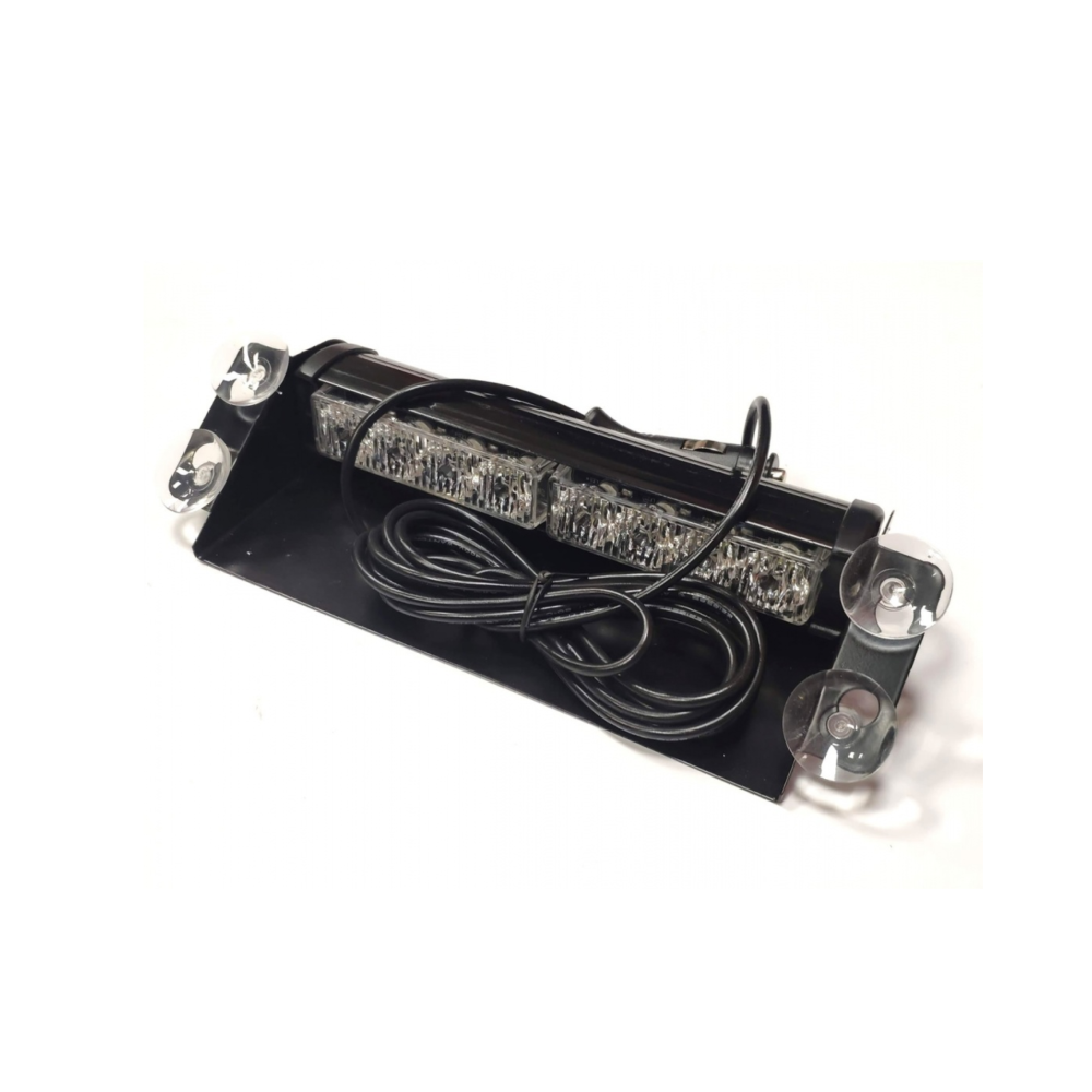 Oranžový stroboskop, který lze umístit za čelní sklo pomocí přísavek. Napájení je z 12V zásuvky zapalovače automobilu..