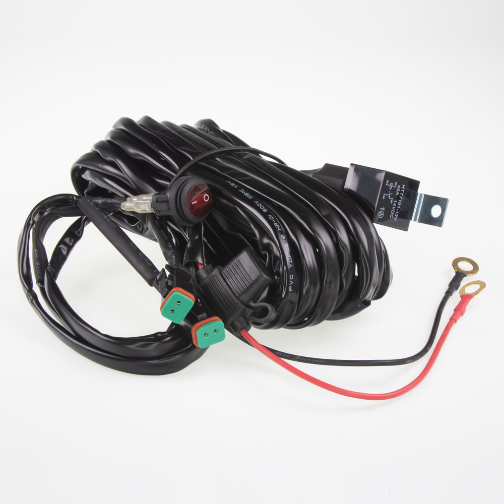 Spolehlivá sada kabelů určená pro snadné připojení dvou pracovních světel nebo světelné rampy. Obsahuje vodotěsný spínač, relé a pojistku pro zajištění ochrany a bezpečného provozu.