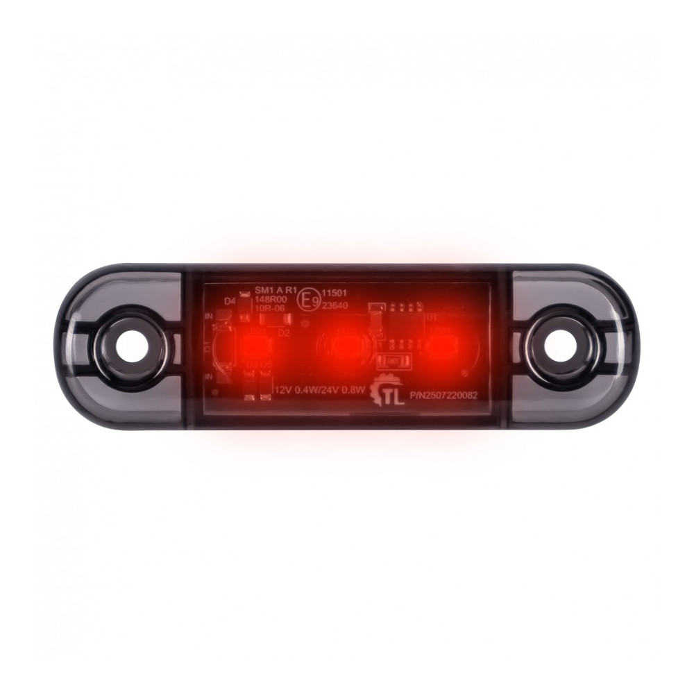 LED poziční světlo L1319 s červeným světlem a kouřovým krytem DARK je určeno pro zadní značení vozidel s napětím 12/24 V. Je vybaveno 3 LED diodami, krytím IP67 a homologací R10 a R148 pro bezpečné použití.