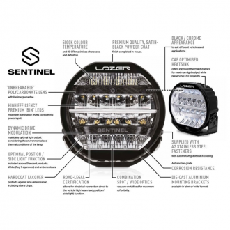 Výjimečný světelný výkon optimalizovaný pro každodenní použití na silnici a v terénu je základem přitažlivosti produktů spolu se stylem, který se hodí k jakémukoli modernímu osobnímu vozidlu, 4x4, lehkému užitkovému vozidlu nebo nákladnímu vozidlu. LED REFLEKTOR SENTINEL je k dispozici ve velikosti 228 mm (9”), řada zahrnuje standardní a elitní žárovky spolu s verzemi optimalizovanými pro instalace těžkých nákladních vozidel.